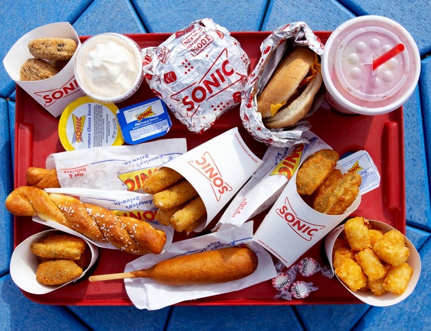 Sonic Corporation, founded as Sonic Drive-In and more commonly known as Sonic, or “The Drive-In,” is an American drive-in fast food restaurant chain with a menu that specializes in custom drinks and old-style American eats.